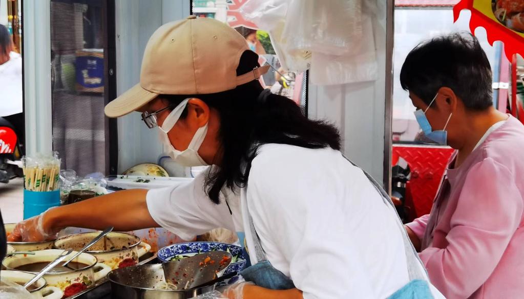 朱艳在为顾客拌凉皮。新华社记者 王菲 摄