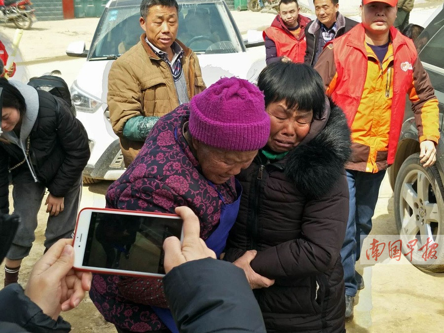 兰小英(前右)与堂姐兰玉莲相拥而泣,后面(中间)男子为弟弟兰汉群。志愿者供图 2月8日,农历腊月二十三,小年。这一天,对于天峨县八腊瑶族乡五福村的兰汉群来说,比过年还要高兴,因为他被拐30年的姐姐兰小英终于回家了。 寻亲:信息太少,迷雾重重 8日上午,坐在回家的汽车上,兰小英止不住流下眼泪。“准备到家了,我妈心情很激动。”陪伴在兰小英身旁的女儿林彩云说,她和父母一家三口,2月6日凌晨从山东聊城坐上火车,辗转柳州、金城江,然后再坐车到天峨。 林彩云说,从记事起,她就知道妈妈不是山东本地人,逢年过节,总觉得她有心事。然而,因为妈妈只读过小学一年级,不认识什么字,能说出的信息过于简单,只有“芜湖”“广西”两个地名发音以及几个亲人的名字。 2017年9月,林彩云在央视《等着我》和芜湖有关微博为妈妈发布了寻亲信息。同年9月25日,志愿者“大树”转发了这条寻亲信息。志愿者“小秀才”看到后,联系上林彩云,并引导她到网站登记。 “芜湖在安徽,我一直在芜湖相关网站发信息帮妈妈寻亲。妈妈说老家那边是山区,种植甘蔗,也放养牛羊,家里有一个弟弟,三个姐姐。”林彩云说,她把这些信息都提供给了志愿者。志愿者把这些信息整合,发到安徽群。遗憾的是,并没有发现相符合的信息。 转机:几句山歌,峰回路转 安徽还是广西?“小秀才”为了确定大的范围,再次询问林彩云:“你妈妈会不会唱山歌?”“小秀才”觉得,每个地区的山歌音调不同,如果能唱几句山歌,或许就能分辨出到底是广西还是安徽。 “以前从没听过妈妈唱歌,接到‘小秀才’电话后我问妈妈,原来她真的会唱山歌。”林彩云说,后来她把一段妈妈唱山歌的录音发给了“小秀才”。“小秀才”又把录音发到广西群和安徽群,请两个地方群的志愿者分辨。 同时,在“小秀才”的引导下,兰小英回忆起在老家走出家门就能看到公路,村子叫“wuhudong”,有个镇叫“bala”,有个小城叫“lupai”。另外,她还回忆起,被拐时坐火车曾路过一个城市“landan”。 广西群志愿者听了山歌录音后认为,兰小英的家应该在广西和贵州交界附近。“小秀才”打开电子地图,根据相关信息,在贵州和广西交界的铁路线上发现有南丹,发音与“landan”相似。从南丹县往外扩展,发现天峨县有六排镇,符合记忆中的“lupai”;在天峨县有个八腊瑶族乡,与记忆中的“bala”一致。再根据记忆中的村庄名字分析,兰小英的家可能在天峨县八腊乡甘洞村或者五福村。 回忆:赌气离家,遇人贩子 根据当地志愿者提供的信息,“小秀才”联系上八腊乡甘洞村的村民兰金元。次日,兰金元回复说,经过打听,五福村有一户兰姓人家在很多年前丢了一个女儿,家人姓名等信息都对得上。 “2017年11月,志愿者告诉我找到妈妈的亲人了,还给了我一个号码。”林彩云说,接通电话以后,妈妈也不敢相信电话那头就是自己的弟弟。“你的嘴上是不是有个疤?”广西的弟弟问。“是的,小时候吃饭被摔坏的碗划的。”兰小英回答。“你的左手是不是有点不灵活?”“是的,左手是有点不灵活。” 林彩云说,许多细节都对得上,妈妈忍不住哭了起来。从那以后,妈妈几乎每天都要和舅舅通电话。 据介绍,兰小英在被拐之前,家里长辈曾把她许给一户人家,但她并不愿意,后来赌气离家,不料遇上了人贩子。“妈妈和爸爸1995年结婚,在那之前,妈妈已经在山东德州生活了好几年,但她从不愿提起那段生活。”林彩云说。 团圆:亲人相见,激动落泪 8日上午,兰汉群杀鸡宰鸭,准备迎接30年未见的姐姐。 “我有4个姐姐,兰小英是四姐,她1964年出生,1988年失踪。”兰汉群说,当年自己还小,对许多事也没有印象,现在父母均已不在,大姐、二姐、三姐都距离较远,要过几天才能赶过来。