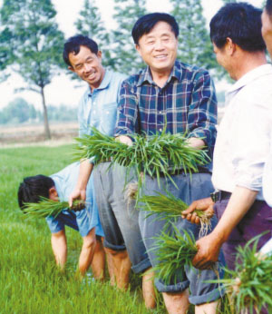 ![]() 作为一名72岁的老人,除了开会或生病等特殊情况,常德盛每天都会亲自迎接到访蒋巷村的客人,并自豪地为他们讲解蒋巷村的光荣村史。到今年9月30日,常德盛就在蒋巷村领导岗位上奋斗整整50年了。50年来,他心为群众想、领着群众干、家让群众当,一心关爱百姓,一辈子无私奉献,成为一面特别具有凝聚力和号召力的旗帜。 坚守本色, 脚踩大地诠释共产党人信仰 曾经有人问常德盛:“你的信仰是什么?”他回答说:“我的信仰就是牢记党的宗旨,为人民服务。干工作必须要全心全意,把整个精力,把一生都扑在那里。老百姓能安居乐业,蒋巷环境优美,看到这些在我的手里慢慢变成现实,那就是我最大的幸福!” 在常德盛看来,所有的身份,没有哪个能比“共产党员”更重要。1966年 5月,22岁的常德盛光荣入党,这个生于旧社会的年轻人,曾亲眼目睹了中国共产党带领人们从旧社会走向新社会、让中国大地“旧貌换新颜”的过程。从解放后社会主义建设阶段,到改革开放、走进新时期,是中国共产党带领着人民从贫困走向富裕再走向幸福。在常德盛心里,始终对党充满感激,这也使他明白,共产党人为劳动人民的幸福而努力奋斗,是责任,更是信仰所在。50年来,常德盛始终用一名普通共产党员精神追求,践行着全心全意为人民 ● 与种田大户研究水稻长势 服务的宗旨。刚走上领导岗位的时候,恰逢“文革”开始,在那个“一手抓革命,一手促生产”的年代,常德盛作为蒋巷生产大队大队长,全面主持村里生产工作。然而他接手的,却是一个十足的“烂摊子”:“蒋巷泽坞锅底塘 , 十年九涝一旱荒 ,泥堵围墙茅草房 , 树皮草根拌青糠”,这是当年在蒋巷村颇为流行的童谣——全村90%的人有血吸虫病,男女老少,面黄肌瘦,苦种一年,收成寥寥,住的是泥土墙、茅草房,甚至因为穷,村里35岁左右的小伙子,半数以上娶不上媳妇。 面对这样恶劣的环境,常德盛没有退缩,还喊出了“穷不会生根 , 富不是天生。天不能改 , 地一定要换”的响亮宣言,在今天看来,这样的誓言依旧振聋发聩。“当时流行‘农业学大寨’,全国都干得轰轰烈烈,但我认为更要做到实实在在。”常德盛认为,“听党的话”并不意味着全盘皆收,更要根据实际开展工作,这是共产党人坚持“实事求是”原则的体现,于是在蒋巷,“治水改土”、治血吸虫病成为了自力更生迈出的第一步。从60年代开始,常德盛带领大家实施了长达10多年的治水改土工程,靠一根扁担两只箩筐,肩挑背扛,累计完成 50多万土石方。千亩低洼地填高了1米多,变为田成方、树成行、渠成网、路宽敞的旱涝保收吨粮田。 然而村里的困难并非一日之寒,常德盛带领着党员干部一步步解决。面对村里35岁以上的男人有一半讨不上媳妇,常德盛专门开了个支委会,让党员干部当红娘。有人觉得这不是党的工作,可常书记却说:“富不富,先看家里有没有好媳妇!” 村民丁小二随父母下放到蒋巷,12岁时父母双亡,举目无亲,他带着6岁的妹妹生活。常德盛给他盖了间茅草房,和村干部一起把他拉扯成人。到了成家的年龄,常德盛比谁都急,不知说了多少人家,好不容易有人愿意,却提出要盖两间大瓦房。常德盛二话没说,带着党员干部,几天时间就帮他盖起了大瓦房。丁小二的喜事办成了!现在,他一家住进了别墅中。说起过去,丁小二感慨万千:“常书记就是我父亲,没有他,我们兄妹俩就没有今天。” “只有大家翻身,自己才能翻身。”常德盛说,党员干部更要讲“公”,更要充分发挥先锋模范作用,50年来,无论村穷村富,常德盛始终坚持这样的原则。 坚持发展,做勇立潮头的改革先锋 走进如今的蒋巷村,干净整洁的道路两旁别墅成行,生态园里风景旖旎,沃野良田满眼翠绿,一派生机。在这个人均收入超 4 万元的村子里,村民们笑得合不拢嘴,“学校像花园,工厂像公园,房前宅后像果园,全村像个天然大乐园”的场景,从想象变成了现实, 这一切都源于常德盛为村里发展布下的一盘棋。 “我们当干部的要跟上形势,因为形势总在发展。”常德盛认为,蒋巷虽然在农业上翻了身,但光吃饱饭还不行,还得想方设法让人民富起来。为了让“最困难的农民也能安居乐业”,继“农业起家”之后,常德盛开始在艰苦创业、科学发展的道路上又迈出了两大步,闯出了蒋巷村独特的改革发展之路,那就是“工业发家、旅游旺家”。 上个世纪80年代,沐浴着改革开放的春风,苏南乡镇企业如雨后春笋蓬勃兴起,常德盛决心抓住大好机遇把工业发展起来。通过到上海、南京等大城市考察市场,他决定兴办建材厂,生产彩钢板。 为拓展市场 , 常德盛昼夜兼程奔波大江南北。“为了在上班前赶到别人办公室谈事,常书记经常是凌晨三点把车装满货,出发赶路。”时任常盛集团公司副总经理的平文彬说,有一次,也是在匆匆赶路途中,载货的面包车与摩托车相撞,坐在副驾驶位上的常德盛牙床错位,一只左眼被撞瘪,如今视力仅0.2,这成了蒋巷人心中永远的痛。 正是靠着这股拼劲,也靠着热忱和诚信,常德盛赢得了客户的信赖,打开了新型建筑材料的市场,常盛集团也从小到大、从弱到强,发展成为华东地区知名的轻、重钢结构和轻质建材企业,为全村建设发展提供了强有力的经济支撑。 1996年4月,村民王阿明怀着忐忑的心情向常德盛说了自己想到外面开家包装材料厂的打算。没想到,常德盛非但没有反对,反而大力支
