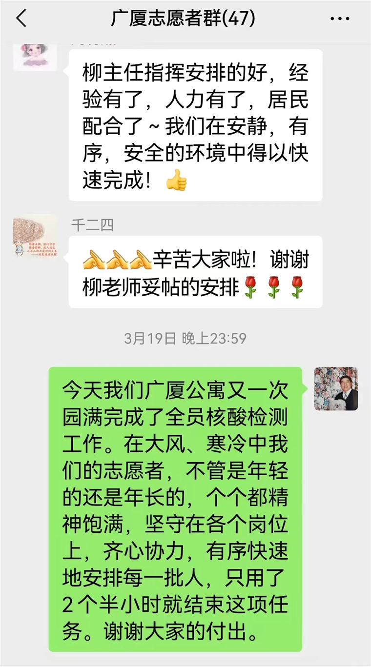 “是居委会‘铁娘子’团队的榜样力量激发了我们!”——社区抗疫志愿者 千鹤二四居民区党总支第三党支部委员 王木泉 “这几个月,我也不知道自己怎么过来的,很多时候居民感动了我们,把我们推着往前走。”——千鹤二四居民区党总支书记 杨翠红 田林街道千鹤二四居委,下辖金祥苑、长春新苑两个小区,共约4850人,面积大、居民人数多、人员构成多元。在此次疫情防控期间,千鹤二四的居委会、志愿者和居民们互相鼓励、互相扶持、互为彼此的力量源泉,以平凡之力彰显责任与担当,全力守护居民安全,筑牢疫情防控“社区防线”。 ![]() 老当益壮 默默守护的主心骨 “一开始疫情来得比较迅速,大家都有点害怕,小区里找志愿者比较难。”柳永耀是一位居民区党支部书记和业委会委员,看到居委会千头万绪、人手紧张,在疫情暴发初期主动成为其所在的广厦公寓“总干事”。在从穿羽绒服到穿短袖的这几个月里,这一栋29层高,居住着289户、700多人的大楼,就成了他的阵地。 “我是一名老党员,这种时候站出来是应该的。”核酸检测、抗原检测、物资分配、为老服务、生活垃圾处理......头发花白的他,始终冲在前面,同时号召更多党员同志加入到志愿者队伍中。 ![]() ![]() “我们大楼的章文俊老师是一名大学教师,小区一封闭,他就积极报名参加志愿者,从三尺讲台走向抗疫第一线,上完网课他就化身为‘大白’。今晚的消杀工作就是章老师做的,他用实际行动践行着‘为人师表’。”经常忙完已是深夜,老柳还不忘斟字酌句,在志愿者群内记录大家工作时的风采,以及居民们互相帮助的感人瞬间。 “学习要有榜样,每个人都有向上向善的意愿!”他说,到后来都不用他去招呼,一看到他在楼下忙,总会有人主动下楼与他一起分担。 ![]() 老兵也是兵 抗疫显担当 千鹤二四居民区党总支第三党支部委员王木泉是一位发型酷帅的时髦爷叔,当他谈起千鹤二四社区里这一群人一起拼的“逆行时光”,哽咽到说不出话来。 千鹤二四居委8名工作人员中,7位都是女生,他被她们的“铁娘子”精神所感动,义无反顾站出来,成为服务社区的抗疫志愿者。她们家里也有父母孩子,完全顾不上,在北大门的门房间里度过了多少个不眠之夜。有一次连续两个晚上通宵,居委会陆老师本就心脏不好,累得差点昏过去,吃了保心丸,继续干!王木泉说:“我堂堂一个男子汉,每次提到她们都会掉眼泪!我本身也是一名有40年党龄的老党员,也是退伍军人,这个时候服务老百姓是我应尽的责任和义务。” ![]() ![]() 疫情期间他是所在的居民楼楼栋志愿者,基本上是12点以后才能躺下,5点就得起来,每天除了忙不完的事,还要应对一些质疑和不理解,安抚居民们的情绪。“封控初期,很多工作大家都是一边摸索一边做的,居民都封在家里也容易有情绪。时间久了,大家也就知道了,你不图名不图利,真的是为了我们这栋楼、我们这个大家庭。”在点点滴滴的相处过程中,邻居们也被他的付出所感动。有人送来一点心意,他都一一婉拒,但是他的心里早已被邻居们的信任装满,他也毫不避讳地为此感到自豪。“现在居民们信任我,是被我们 ‘感化’的,是靠干出来的!” ![]() (居民为志愿者做的宣传海报) 数学老师发挥特长 快递巡逻安全高效 “现在我老婆都不敢让我出门取快递了,说我下楼一趟,不知道要隔多少时间才能返回,因为总会遇到熟人停下来聊上几句。”疫情期间积累起来的人气,最近让范亮和他的家人感受到了这么一个甜蜜的“烦恼”。 疫情封控期间,无论是政府的保供还是居民的团购,都需要社区“摆渡人”送到每家每户。范亮是一名数学老师,疫情期间既要更加耐心地为学生上好网课,又要频繁穿梭于各个楼组。也许是充分利用了数学上排列组合的专业优势,他负责的快递巡逻组通过高效排班,稳稳地担起了疫情期间社区的物资快递分发和巡逻两大任务。分区分类整理、拍照通知收件人,行动迅速,安全有序。 ![]() (居民为志愿者做的宣传海报) 从不理解到双向奔赴 疫情防控期间,在千鹤二四社区里,除了居委会的8个人,还有460多位志愿者在为社区有序运转无私奉献。 “这几个月,我也不知道自己怎么过来的,很多时候居民感动了我们,推着我们往前走。”千鹤二四居民区党总支书记杨翠红说,蔡士娟、陈善辉家庭全家出动;周萍、汤文倩、骆文雯等志愿者,在最困难的时期,全天守在居委会,随时待命;很多志愿者的家人从不理解到后来主动送饭等做好后勤工作,给予极大支持。还有志愿者郭拥军一边挥洒着志愿者汗水,一边用自己的诗歌把自己和邻居们一次次的真情触动记录下来,用自己的方式来支持和配合抗疫工作。 ![]() (居民为志愿者做的宣传海报) 越是艰难的时候,人与人之间的情感越容易传递。独居老人、人口特别多的家庭常收到志愿者们募集的物资,志愿者们也常收到左邻右里的“投喂”……慢慢地,越来越多的人加入到为大家服务的志愿者队伍中,原本陌生的面孔也变得熟悉,就这样大家从平行线到有交集,用自己的实际行动筑起了社区防疫的钢铁长城。 致我们的社区 文:郭拥军 无论您是独居老人 还是即将临盆的孕妇 请不要惊慌 无论你是因确诊封控的楼组 还是因密接管控的单元 请保持淡定 无论你们的快递外卖 无论你们的瓜果蔬菜 都不用担心 在我们生活的社区 有一个24小时连轴转的