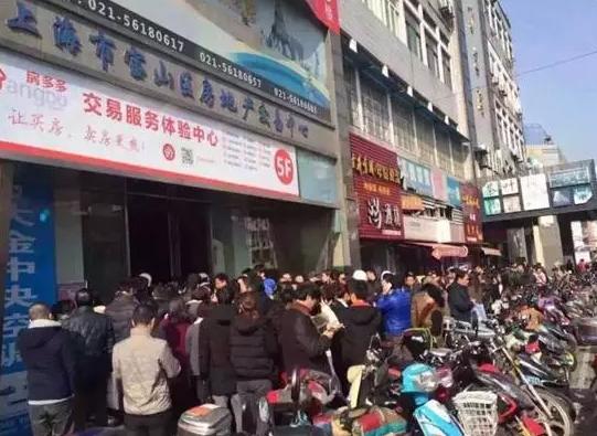 裹着被子来的购房者 与此同时,上海各区的交易中心依旧延续着上周的火爆情形,但不同的是这次队伍已经排到了马路上…… 来看看上海楼市有多火: