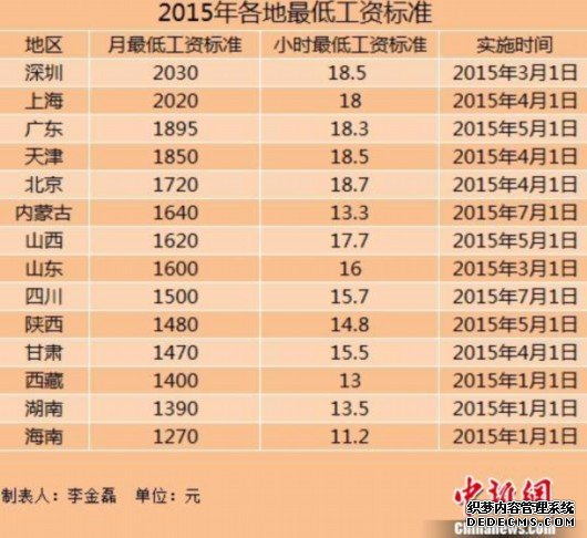 进入7月份,四川、内蒙古均上调了最低工资标准。据中新网记者不完全统计,截至目前,全国至少已有14个地区上调了2015年最低工资标准。其中,上海、深圳两地最低工资水平超过2千元大关。 7月1日,四川、内蒙古两地分别上调当地的最低工资标准。其中,四川调整后的月最低工资标准最高档为1500元,非全日制工作小时最低工资标准最高档为15.7元;内蒙古一类地区最低工资标准由每月1500元上调至1640元,非全日制工作小时最低工资标准由每小时12.2元上调至13.3元。 随着上述两个地区最低工资标准的上调,据中新网记者不完全统计,进入2015年以来,全国已有湖南、海南、西藏、天津、深圳、山东、陕西、北京、上海、天津、甘肃、山西、四川、内蒙古等14个地区先后宣布提高最低工资标准。 调整之后,深圳、上海两地月最低工资标准分别为2030元、2020元,最低工资标准超过2千元大关。而小时最低工资标准最高的是北京,达到18.7元。 从最低工资标准的“含金量”来看,上海、北京均明确最低工资标准不包含“个人应缴纳的各项社会保险费和住房公积金”,用人单位应按规定另行支付,因此,这两地的最低工资标准“含金量”更高。 据了解,《最低工资规定》明确,最低工资标准一般采取月最低工资标准和小时最低工资标准的形式。月最低工资标准适用于全日制就业劳动者,小时最低工资标准适用于非全日制就业劳动者。各地区的最低工资标准每两年至少要调整一次。 根据人社部数据显示,黑龙江省最低工资标准已经两年多未调整,目前执行的仍然是2012年12月1日调整的最低工资标准,最高档月最低工资标准为1160元。 记者注意到,虽然今年以来中国经济下行压力依然较大,但上调最低工资标准的地区却并未明显减少。人社部数据显示,2014年全国共有19个地区调整了最低工资标准,而2015年仅过去一半时间,已有14个地区上调了最低工资标准。 (责任编辑:北风) |