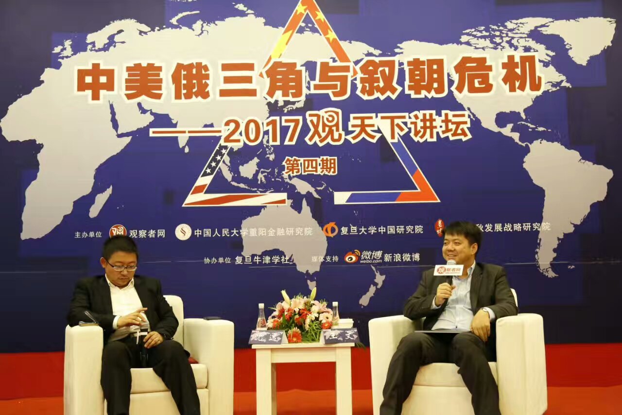 【4月19日,观天下讲坛第4期——特邀复旦大学国际政治系副教授沈逸、中国人民大学重阳金融研究院执行院长王文对谈“中美俄三角与叙朝危机”。此前观察者网已推出沈逸老师《读懂中美俄三角,先要认清两个美国、两个特朗普》一文。相比之下,王文教授对未来局势的看法更加乐观,他认为当前美俄对中国空前倚重,即使在叙朝危机之下,中国崛起乃至重塑中美俄大国关系都有很大的机遇。】 ![]() 二战后,全球进入中美俄博弈的新大国时代 二战后,全球互动的进程正式跨越了以欧美国家为核心的运作模式,逐渐进入到中美俄博弈的新大国时代,并一直延续到现在。 如果按照基辛格在上世纪中叶提出的“三角战略”理论,那么1990年冷战结束以前,中美苏三国关系是倒三角形,美苏冷战竞争主导和牵引着三国关系与全球格局,也相继拉拢着中国的对外关系。不同的是,1980年代以前,苏中关系的一“边”更硬;1980年代以后,美中关系一“边”变硬。 1990年代以后,美国一超独霸时代形成,三国关系呈现正三角形状态。美国在上方,俄中两国成为下方的两个点,美国牵引中俄的三国关系,进而主导着全球局势。 2008年以后,正三角形的状态不变,但三国的位置逐渐呈现了位移,中国开始转为上方。尤其是2017年以来,中国有史以来第一次成为三角关系最上方的位置,开始牵引与主导着美俄关系乃至全球形势的发展。法国《费加罗报》4月11日也发文讲,“中国上升到了中美俄战略三角的顶端”,也证实了我一直以来的判断。 2017年以后,美俄两国对中国的倚重空前 正是因为中国战略地位上升到了三角关系的顶端,我们从种种迹象中看到美俄两国对中国的倚重程度达到了空前的状态。 前段时间我在莫斯科接受了“今日俄罗斯”(RT)的长篇专访,而且我也参加了莫斯科最大的一个经济与金融论坛——莫斯科经济论坛,发表了主题演讲,在跟他们对话中了解到一些非常详实的俄罗斯对中国的看法。 我跟一个俄罗斯朋友深谈过很多次,他叫Glaziv,是非常著名的俄罗斯学者,也是普京总统的经济顾问、俄罗斯科学院的院士,曾当过俄罗斯对外经贸部的部长。他在新作《世界经济体系危机与中美俄关系》一书中讲道:俄罗斯的未来有七种选择:1)维持目前的中美俄现状;2)成为美国的殖民地;3)成为中国的被保护国;4)孤立和军事被干涉;5)孤立和全民动员;6)俄罗斯—中国战略协作关系;7)中美俄合作伙伴,俄罗斯最舒适,但不稳定。最后他认为第6项是最优选择,并且用了将近一本书的篇幅论证中俄之间的战略协作关系。从目前看来,无论是金融、投资和贸易领域,还是政治、安全、战略领域,都逐渐显现某种现象:中俄之间“结伴不结盟”的准盟友关系正在形成。 那么,美国对中国怎么样呢?特朗普上台后,我发现一个非常有趣的现象。美国与中国的战略利益重合度、相向性也达到多年来的最大值。比如中美都希望抑制朝鲜“拥核”、都希望能够扭转贸易的战略失衡、都希望加强基建合作,都希望人民币能够呈现升值的趋势。可以说,特朗普迄今为止的表现对中国都是利好。 习总书记说,我们有一千条理由把中美关系搞好,没有一条理由把中美关系搞坏,现在美国主流社会的确非常难找到搞坏的“一条理由”。中美已经互为第一大贸易伙伴国,双方贸易并非直接竞争,而是具有较强的互补性,合则两利,斗则俱伤。特朗普的牌都在明面上:贸易谈判、汇率问题、叙利亚的导弹、阿富汗的炸弹之母以及朝鲜半岛的航母战斗群。 今年4月初,我曾在华盛顿与美国多家顶级智库开展密集调研,对新时期的中美关系进行一轮深度摸底。我认为,特朗普目前仍处在“学习期”与“试探期”。上任两个多月来,在重大涉华问题上,特朗普处于“轻率表态——补充认知——重新表态——可能再度轻率表态——再度补充认知”的螺旋式循环。 在三角关系上,特朗普的调适表现在以下三个方面。 对于俄中两国,特朗普的“试探”变得有一些忌惮。在叙朝问题上,对中俄的态度很是关切与顾忌。比如,执政以来,特朗普以实际行动证明他和传统政治人物有多么不同:既有雷厉风行、杀伐果断的手腕,也有自食其言、反悔如翻书的表演。但仔细观察可以发现,特朗普想要达到的目标很少轻易放弃,某些食言不过是某时某刻的战略放弃。比如废除奥巴马医改和气候变化政策、退出TPP、一再不屈不挠地颁布禁穆令、推动美墨柏林墙的建造等。但是只有两个领域是例外:一是对中国,二是对俄罗斯。 对中国,特朗普没有表现出明显的恶意,而且还反复强调对习主席的好感,实际上实力决定了美国对中国必须要有的尊重。虽然前期有过波折,但最终还是在台湾问题上重返历届美国总统的立场——这被视为中国的一个外交胜利,而且还接受了中国多年以来提出的新型大国关系的说法,甚至西方11国大使联名发起的针对中国人权的挑战,美国也极其罕见地拒绝参与。 ![]()