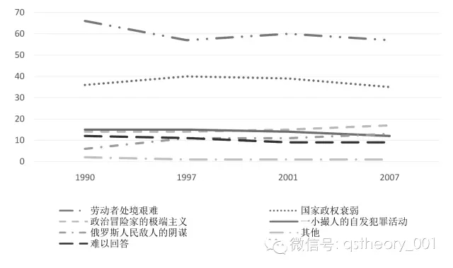 调查表1 “十月革命给俄罗斯人民带来了什么,你同意哪种意见?”(百分比)