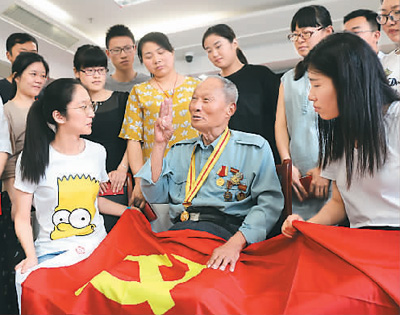 图为江苏省灌云县伊山镇人大代表、干部党员在聆听老革命战士讲述党的战斗历史。吴晨光 摄(人民图片)
