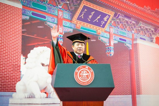亲爱的2017届毕业生同学们:大家上午好! 我们今天相聚在这里,共同见证你们人生中极其重要的时刻。首先,请允许我代表学校,祝贺你们顺利毕业!祝福你们的人生更加精彩! 大家这几天都感受到了充满温情的离别。东区的宿舍,你们的学弟学妹们用别开生面的灯光秀,送给你们毕业的惊喜。前天晚上的外滩,为你们的毕业而点亮,让全上海都看到了交大人“稳稳的优秀”。最近这段时间,我用各种方式为大家送别:参加毕业生合影,为你们多留一些对母校的回忆;与你们面对面座谈交流,多倾听一些大家的建议,希望把学校办得更好。毕业生晚会上,我和大家一起乘坐“时光机”,回味在交大的青春岁月,你们在交大四年,我在交大四十年。我们都把人生中最美好最具活力的时光,留在了交大,相信交大也在你们心底,留下了不可磨灭的烙印。 从交大走出,你们将迈向无尽宽广的人生舞台!我很希望你们知道自己要去向哪里。“世界有如海洋,时代有如劲风”。在这个伟大的时代,首先希望你们拥有自信,不仅是对个人前途的信心满满,更是对国家发展的坚定信念。个人的自信与国家的自信联结在一起,将汇聚成建设一流强国的不竭动力!同时,光有自信还不够,还需要具有坚韧的品质,自信和坚韧最终是为了抱负和理想的实现。今天,作为你们的校长和师兄,我就把自信、坚韧和抱负送给你们作为临别的寄语。 先讲自信。人会因为自信而变得优秀,优秀使人更加自信。四年前,各位同学从高考战场上脱颖而出,信心满怀地走进交大。四年里,有的同学在激烈竞争中勇占鳌头更加自信,也有的同学因为褪去光环而失去自信。最难能可贵的是,有的同学能够在重新认识自我的过程中,重塑自信。致远学院戈劼妤同学在毕业生座谈会上的发言让我印象深刻:她刚到致远学院,一时没有适应学习节奏,产生了迷茫。是老师的鼓励,同学们的激励,让她找回了自信,明确了目标。因为自信,她的学习成绩在专业名列前茅;因为自信,她从容地选择攻读中科院博士学位,而放弃了赴世界顶尖学府深造的机会。她说:“科学无国界,但是‘营养科学’有国别,我想研究中国人的营养学,做世界一流的营养学家!”从戈劼妤身上,我看到了自信的力量。我相信,因为这份自信与从容,戈劼妤一定会实现她的理想!同学们,自信是源于对道路的坚信,对价值的追求。未来三十年,中国将步入世界舞台中心,也是你们人生事业的黄金三十年。你们有几分自信,中国就有几分自信!你们在人生价值追求上有多自信,中国在自己的道路上就有多自信!期待每一名交大的学子都能够带着中国人的精气神走出自己的精彩人生,让世界看到中国的自信与底气,让国家和民族为你们自豪! 再说坚韧。“坚”就是要坚守。青年人就要有“树坚不怕风吹动”的决心。“韧”就是要有韧性。韧性是让你坚持到底的可贵品质。“坚”不容易,“韧”更难得。有坚有韧,方能无往不胜。化工学院张永明教授,成功研制了全氟离子膜,突破了长期制约我国氯碱工业发展的瓶颈。离子膜的关键技术长期被个别发达国家所垄断,其研制难度远远超出一般人想象,在很长一段时间里,几乎没有人相信他会取得成功。每个新的实验都充满未知,张永明经历了无数次的失败和挫折,迎难而上、愈挫愈勇,终于取得了成功,让中国的氯碱工业用上了我们自己生产的离子膜。我曾经到他实验室参观,发现他为了连续做实验,几乎把家安在了实验室。他说,“记不清有多少个不眠之夜,既然国家需要,我们就应该义无反顾、一往无前。即使我们没有成功,至少也要为后来的研究者做一颗铺路的石子。”同学们,坚韧的背后是对目标的坚守,这种优秀的品质,要在不断锤炼中造就。坚韧,就意味着不畏险阻,逢山开路、遇河搭桥,去追求不平凡的人生。坚者恒刚,韧者恒强。拥有坚韧的你们,终将会把一切困难甩在身后,守得云开见月明! 最后谈谈抱负。在拥有自信与坚韧之后,在当今的中国你们一定会拥有较好的物质生活。但要想真正实现事业上的成功,还要有远大的抱负。一个满足于衣食无忧、生活安逸的人不可能取得真正的成功。只有为国家社会做贡献、为人民谋福祉,才能成就有价值的人生。就在4天前,我国首艘万吨级新型驱逐舰,在上海江南造船厂正式下水,标志着我国海上国防实力实现了又一次新的飞跃。你们的学长,机动学院1982届校友徐青,是这艘舰艇的总设计师。毕业后,徐青来到武汉701研究所工作,那时正值改革开放初期,很多人下海经商,但他不为所动,坚持奋斗30余载,先后担任多艘重要舰船的总设计师。他说:“舰艇就是流动的‘国土’,舰艇开到哪里,哪里就是我们的国家。”而他的抱负,就是通过建设这些流动的“国土”,让全世界的中国公民更有安全感与尊严感。正是因为有这样远大的抱负,徐青才能从一个成功走向另一个成功。作为交大人,你们正当青春年华,更应把实现远大抱负作为一生的价值追求,去创造属于你们的时代贡献! 同学们,当今时代,我们不缺物质上的满足,更要坚定精神上的自信;不缺顺境中的高歌猛进,更要在逆境中永不放弃;不缺个人的舞台,更要追求为国奋斗的理想主义情怀! 历史沧桑巨变,未来宏途在望。在这样伟大的历史进程中,我希望每一名同学都不当过客、不当看客,在千帆竞渡中勇往直前。我希望,每一名同学都能够带着自信、坚韧和