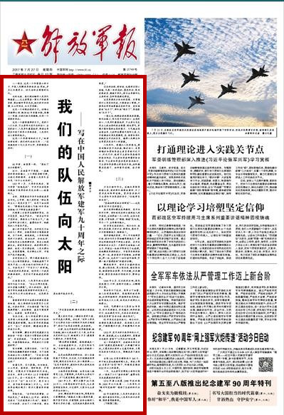 ![]() 八一将至,这是一个仰望高山的日子,中国人民解放军将迎来90华诞。岁月之水能穿石,但无法抹去辉煌的记忆。 此时此刻,我们深切缅怀人民军队缔造者——毛主席等老一辈无产阶级革命家,深切缅怀革命先烈。他们的丰功伟绩,与山河同在,与日月同辉! 这是一个回眸征程的日子。但难以用精辟之语,概括90年卓著功勋。面朝八一军旗,让我们把无限感慨,化作一个深情的军礼! 这是一个激情澎湃的日子。党的十八大以来,习主席作为党中央的核心、全党的核心、人民军队最高统帅,率领全军官兵开创了强军兴军新局面,人民军队站上崭新的起点。 这是一个军歌唱响的日子。“向前向前向前!我们的队伍向太阳……”在迎接党的十九大召开之际,军歌嘹亮而抒怀! (一) 90年前,南昌第一枪,“染红了东方的黎明”。 如今,在南昌市于固路,一座教堂的青砖西墙上,3个弹痕清晰可辨。让我们寻根溯源,去看看人民军队当初是“为什么出发的”。 1927年7月,大革命失败后,国内形势“极端危机”,中共中央决定举行挽救中国革命的历史壮举——南昌起义。 当时,周恩来任中共中央前敌委员会书记。6年前,他入党时说“我认定的主义一定是不变了”,还写下如此诗句:“梦想赤色的旗儿飞扬/却不用血来染他/天下哪有这类便宜事?” 代理第二方面军总指挥的贺龙,还不是党员,他庄严表示:“我完全听共产党的话,要我怎么干就怎么干。”起义后部队伤亡很大,盛暑远征中,他毅然加入中国共产党。 弱小的中国共产党,为何吸引力如此巨大?那时,各路军阀你方唱罢我登场,为了私利,接连混战。小军阀孙殿英的口头禅是:政治也好,打仗也好,无非就是怎么把钱挣回来,再怎么把钱撒出去。有的军阀坦言:我的部队哪儿都好,就是一见不得金钱、二见不得女人。在国家罹难、民不聊生之际,中国共产党力挽狂澜。 当时党派众多,哪个能救国救民?仁人志士深思默察后,无悔地选择了中国共产党——因为他们信仰的共产主义,目标是为了“千百万人”的幸福。“就政党的本质来说,信仰是一个政党的精神旗帜,是区别于其他政党的根本。” 从南昌出发,人民军队就以党的信仰为奋斗目标,“壮士头颅为党落,好汉身躯为群裂”。伟大的信仰,感召着中华民族最具报国情怀的优秀分子。人民军队之所以战将如云,这是根本所在。 看看有的革命旧址展出的精美茶具就知道,起义将领的生活曾是多么优渥。而参加革命,不仅意味着“脱下皮鞋换草鞋”、流血牺牲,甚至可能连累亲人:或被害,或背井离乡。 冯友兰说:圣人所做的事无非就是寻常人所做的事,但是他对所做的事有高度的理解。他从哲学的角度褪去了“圣人”的面纱,解读神圣事业的动力之源。 因为理解,赣东北苏区创建者方志敏坚信“中国一定有个可赞美的光明前途”,并由衷地说:“为着共产主义牺牲,为着苏维埃流血,那是我们十分情愿的啊!” 因为理解,先辈们坚信:“为了在中国彻底推翻黑暗的旧制度,为了实现民族独立和人民解放”,“不论自己能否到达胜利的彼岸,我们的旗帜一定能达到!” 向着太阳,百川奔海。汩汩细流,从山沟里、窑洞里、青纱帐里、芦苇荡里,汇聚成不可阻挡的时代洪流。在东北,我军3年间从10多万猛增到100多万;在一次战役中,华野四纵由2.3万“打”成4.3万,竟多出2万,其中我军还牺牲1万多人。为何我军会越打越多?因为大量敌军弃暗投明。 黑格尔说:“合乎时代的事物,必然会发生。”南昌起义22年后,被国民党称为“无足轻重的小队伍”,摧毁了一个旧世界,打出了一个新中国,将五星红旗升起在北京。 (二) “历史寓含规律,揭示规律必须透视历史。” 遵义会议旧址,二楼会议室的火盆,似乎还炭火熊熊。在这里,“实际上形成了以毛泽东为核心的新的中央的正确领导”,保证了红军杀出重围,走向胜利。 之前,这支年轻的队伍筚路蓝缕,缺乏经验。湘江之战血拼5天5夜,红军由出发时的8.6万,锐减到3万多!遭遇重大损失后,才痛定思痛。 “群龙得首自腾翔,路线精通走一行,左右偏差能纠正,天空无限任飞扬。”为缅怀遵义会议,朱德元帅赋诗一首。 这是血战得来的辩证法:核心在真枪真刀中形成,反过来,又引领推动战争实践。越是在生死关头,核心越重要——“这是中国革命、建设和改革从胜利走向胜利的历史逻辑”。 土地革命战争时期,红军与敌人经常是1∶20,力量悬殊。正是有毛主席这个核心,才“几度危难急,赖之转为安”。 1947年3月,蒋介石集中34个旅23万人,三面围攻陕甘宁边区。毛主席坚持留在陕北,不过黄河,大家为毛主席的安全而担心。 当时,解放战争已经打响。周恩来给大家解释说:“航船在大海上遇到风暴,舵手坚守岗位,沉着驾驶,会给全船的人带来无穷的力量,这是战胜风暴的决定因素。” 过去的征程,有坦途,也遇到过惊心动魄、九鼎一丝的危机:篡党夺权、策划武装政变、想插手军队。因为全军都听毛主席的话,各种阴谋都没得逞。 这是紧要关头给出的答案:不管遇到什么恶浪和风波,只要有核心掌舵,只要军权牢牢地掌握在党的手里,党和国家就“乱不了”,部队就“跑不了”,阴谋家就“反不了”。 一国之运,砥砺奋进就能迎来高潮。新长征路上,作为党中央的核心、全党的核心、人民军队最高统帅,习主席以马克思主义政治家的政治智慧、理论勇气、卓越才能和驾驭全局的能力,大气魄治党治国治