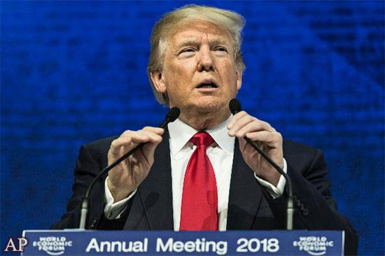 2018年1月26日,特朗普在达沃斯论坛上演讲。(图片来源:《日本经济新闻网站》)