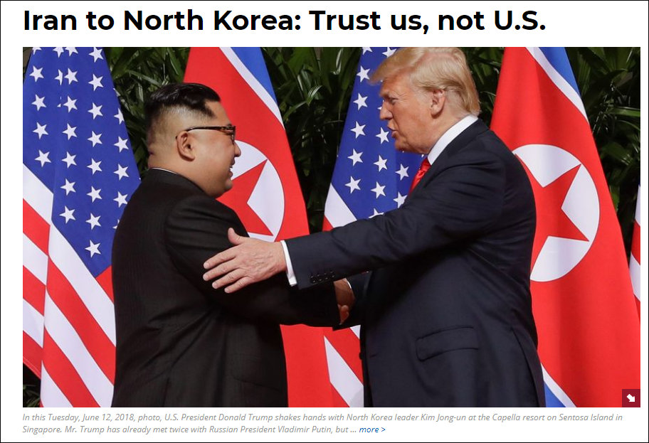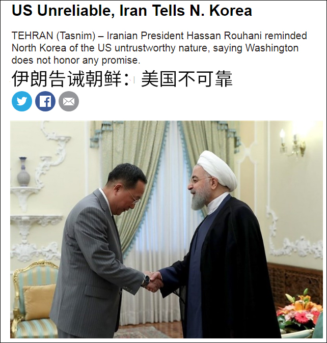 "伊朗对朝鲜说:要相信我们,而不是美国"《华盛顿邮报》报道截图