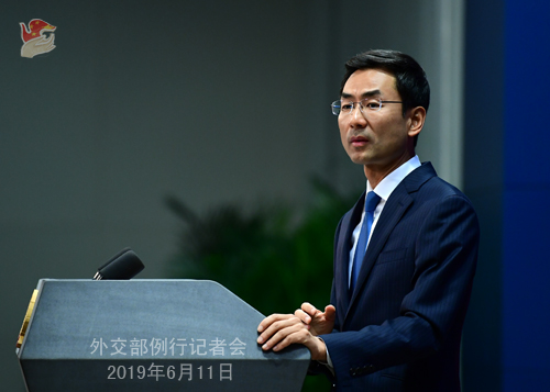 6月11日,外交部发言人耿爽主持例行记者会。 有记者提问,美国总统特朗普10日接受美国CNBC电视台采访时透露,如果中国拒绝在本月下旬二十国集团(G20)大阪峰会期间举行首脑会谈,他将继续对中国启动“第四批”加征关税制裁。请问中方有何回应?