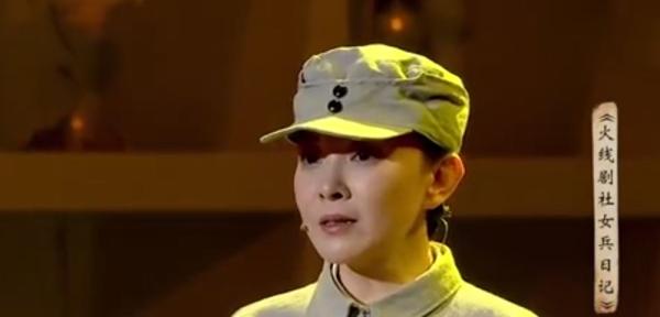 中国女演员刘威葳在舞台表演《火线剧社女兵日记》