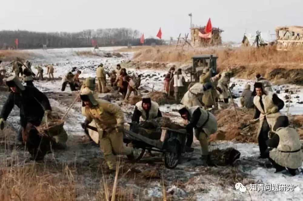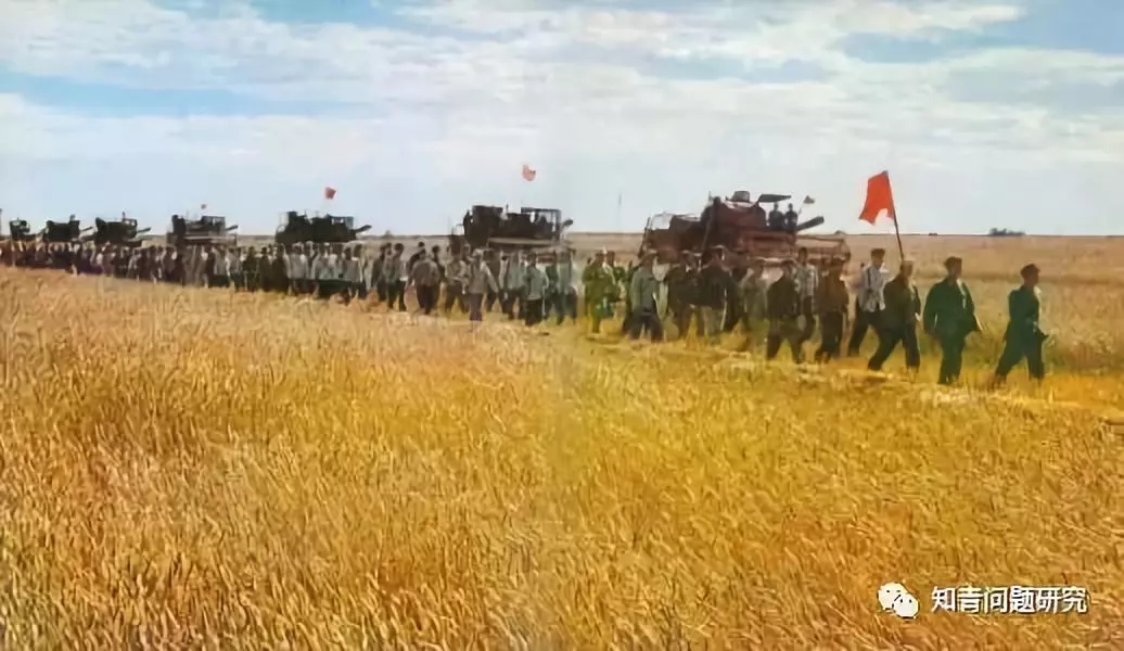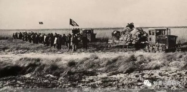 农村劳动是艰苦的,而垦荒劳动更是苦上加苦;边疆生活是艰苦的,而高原的边疆生活更是苦上加苦。这些,都没有吓倒年轻的垦荒队员。 ![]() (一)进军途中 2月26日, 是重庆青年志愿垦荒队的300名青年正式出发去若尔盖草原的日子。从山城出发后,沿途都受到四川各地青年的热忱接待与欢送。 汽车穿过成都平原,一个高山连着一个高山,山上白雪皑皑,原始森林茂密。过了麦尔玛,到处是一道道的冰河。行进的汽车不得不停了下来,队员们开始了徒步行军。8个小伙子拉着两部满载行李的大车在冰上移动着。路很滑,队员们经常摔跤;脚被冰凌刺出了血就扯块布扎好伤口;口渴了,就在地上抓把雪塞进嘴里。遇到冰河,他们就卷起裤管、打着赤脚,一股劲冲过去。有时大车拉到河心,冰河解冻,半截大车掉进了冰窟窿,队员们就站在冰水里,忍着刺骨的寒冷,拉的拉,推的推。这样一直过去了4天。准备的干粮快完了,队员们觉得拉大车的小伙子最辛苦,都主动把干粮拿出来给拉大车的小伙子吃。小伙子们担心姑娘们体弱,受不了这样大的苦,总想帮她们一把,但姑娘们都很倔强。她们说:“你们受得住的苦,我们也受得住。” 经过9天行军,垦荒队员们终于到达了若尔盖草原。草原十分辽阔, 垦荒队员们又在唐克坡上徒步行走了4天,才到达农场所在地。 (二)开垦荒地 3月中旬,在四川内地已经是播种季节,但草原上还覆盖着白雪。生产队员们就利用这个空闲时期,展开了积肥运动。草原的肥源是异常丰富的,遍地都是畜粪。但那时,这些畜粪上面还被雪掩盖着;同时垦荒队员又没有准备积肥的工具。在这样的情况下,大家就用双手代替工具,刨开冰雪,把粪肥拣在自己的面盆里。手被冰雪冻得发痛,但谁也不叫苦。到4月初,生产队的120多个队员就积了近200万斤肥料,提前完成了原计划要在5月份才能完成的数量。 ![]() 机耕队员们的任务是学习,他们必须在春耕之前要成为熟练的农具手。没有课堂,没有讲义,他们就坐有冰冷的草地上,用心听课和作笔记。为了在尽快短的时间里学会基本知识,不少青年还充分利用吃饭的时间,端着碗蹲在农具旁边熟悉机械零件;晚上,在帐篷里的油灯底下,抓紧时间复习笔记;天刚亮,就有人推开被子旁边的积雪,开始了新的学习。 草原的春耕季节是短促的,农场计划春季要开垦和播种的任务也很大,而当时只有3台拖拉机能够工作。为了加快垦荒进度,机耕队员分成两班,3台拖拉机在4个年轻人的带领下,昼夜不停地在处女地上耕耘。草原的夜是寒冷的,而且常常狂风暴雨,风雪交加,但垦荒队员们都抢着要做夜班。机耕队的垦荒效率也迅速提高,每班犁的土地由80亩提高为91亩。 为了抓紧在较短的时间里播下种子,垦荒队员们每天早上5点钟起床一直干到晚上,有时晚上也点着煤油灯干。有一次,正在播种时,突然乌云密布,狂风大作,接着是一阵急骤的雪弹子,队员们赶紧顶着鸳兜,跑回家一看,帐篷被风吹翻了,口袋里满是雪弹子。经过艰辛的劳作,垦荒队员们在第一个季节里,就开垦出7000多亩荒地,并在6000多亩的处女地上播上了青稞、小麦、洋芋和亚麻、甜菜等种子。 ![]() (三)采伐林木 采伐林木是垦荒队员们的又一重要工作,他们中的一支队伍开到了原始森林,去砍伐建设房屋和粮仓所需要的木材。队员们上山后在斜坡上搭起木房,这就是他们的住屋。深夜,森林里狂风的呼叫声,夹杂着老虎、豹子的吼叫声,经常把队员们从梦中惊醒。4个队员持着卡宾枪,守护在木房的四周,保卫着队友的安全。 原始森林里的气候比草原还要冷,大风雪里经常夹着比拇指还大的雪弹子,有的地方积雪终年不化,树枝上倒挂着一条一条的冰凌。山里空气稀薄,劳动不到多久,就要喘气。伐木队员最初去的时候,一天只能砍伐两三根树子。在这样艰苦的环境下,队员们展开了热火朝天的劳动竞赛。 在森林里,斧头、锯子的声音夹杂着野兽的叫声,与伐木队员的笑声、歌声交融在一起。风刮来时,队员们说是老天爷的大电扇;雨袭来时,队员们说这是露天浴室;摔了跤,他们说是在溜冰。在这里,处处都充满着革命乐观主义精神。留在草原上的垦荒队员对伐木队员非常关心,他们常常派人到森林里去探望自己的伙伴,姑娘们抢着为伐木队员洗衣和补衣,炊事员爬山踏雪把热腾腾的饭菜送到伐木场来。伐木队员们很受感动,他们决心提前完成伐木任务,伐木数量每天也提高到10多根,甚至50多根。当白河的冰块溶化的时候,伐木队员们又将他们砍伐的7000多块木材顺着河水流到唐克农场的建设工地,去修建房屋和粮仓。 (四)苦中有乐 ![]() 垦荒劳动是紧张和艰辛的,而草原的生活却既艰苦又充满着乐趣。初到这里的时候,垦荒队员们感到与在家里是大不一样,要想吃一顿香甜的饭,或是用热水烫烫脚,或睡上一个好觉都是不容易的。但是,这没有吓倒垦荒青年,他们知道只有用自己双手劳动和开发草原的坚强意志才能克服这一段眼前的困难。于是,他们在草地上搭起帐篷,用成捆的茅草垫成床铺,在白水河里取水煮饭,夜间把睡袋摊在被窝里遮挡草原上的风雪。 草原上的空气特别清新,垦荒队员早上起来后,就参加各种体育锻炼,有的作早操,有的跑步;中午气候温和,队员们都喜欢到白河里游泳;傍晚,姑娘们在草原上散步、哼歌,小伙子们骑着唐克马在原野上飞奔;有的在场地上打篮球、排球,还常与驻地解放军部队和实