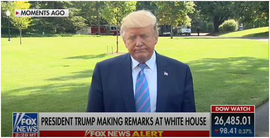 (特朗普在白宫草坪接受采访,福克斯直播视频截图)