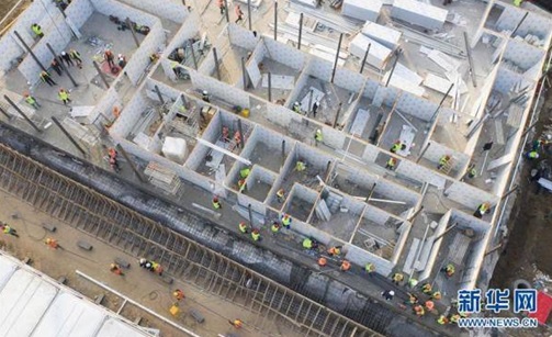 1月30日,火神山医院建设工地(图自:新华社)