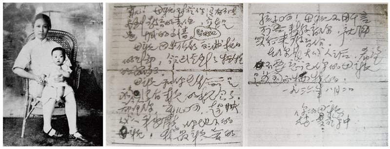 左图是赵一曼留给儿子的唯一一张合影。右图是赵一曼写给儿子的遗书。她在信中写道:“母亲对于你没有能尽到教育的责任,实在是遗憾的事情。母亲因为坚决地做了反满抗日的斗争,今天已经到了牺牲的前夕了。母亲和你在生前是永久没有再见的机会了。希望你,宁儿呵,赶快成人,来安慰你地下的母亲!我最亲爱的孩子呵!母亲不用千言万语来教育你,就用实行来教育你。在你长大成人之后,希望不要忘记你的母亲是为国而牺牲的!”