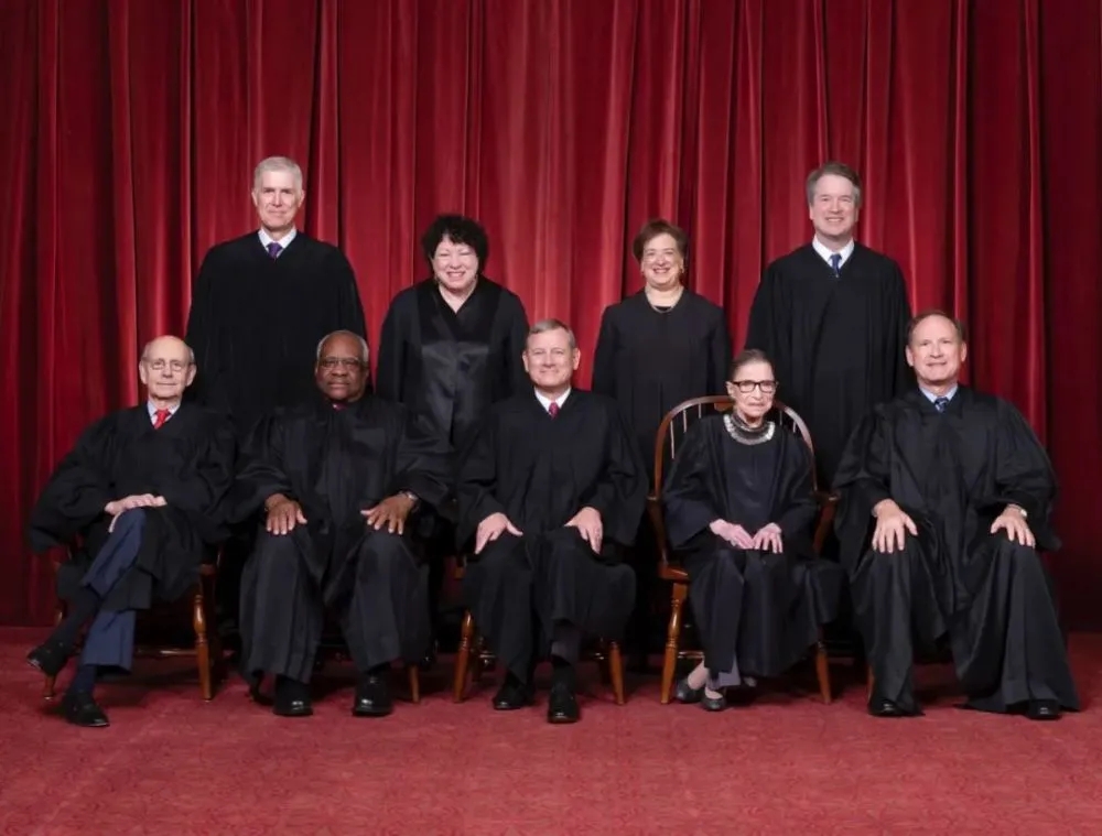 2018年美国最高法院9名大法官合影(图源:美国最高法院官网)