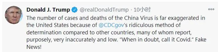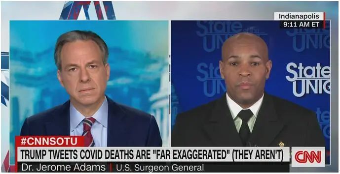 不仅是福奇,美国公共卫生局局长杰罗姆•亚当斯同一天在接受美国有线电视新闻网(CNN)《国情咨文》节目采访时也被问及特朗普推文相关问题,他也为CDC发布疫情数据的准确性进行了辩护。 “从公共卫生的角度来看,我没有理由怀疑这些数字,我认为人们需要非常清楚,这不仅仅是关乎死亡病例的问题。”亚当斯说,“这是关乎医院收容、能力的问题。” ![]()