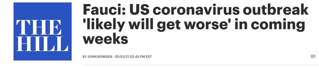 美国《国会山报》另一篇报道还提到,福奇当天在NBC接受采访时警告称,美国的新冠疫情在接下来几周“可能会更糟”。 ![]()