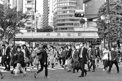 由于疫情恶化,日本政府4月23日晚再次宣布东京都、大阪府、京都府、兵库县4地进入紧急状态,期限暂定为4月25日到5月11日。图为4月23日,人们佩戴口罩走在日本东京涩谷街头。新华社发