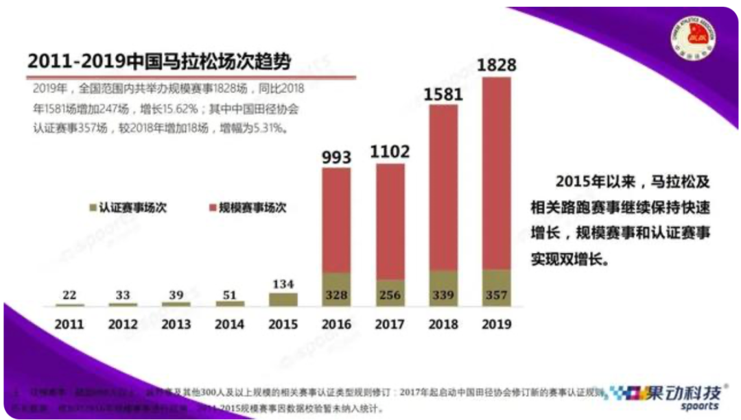 21条生命猝然逝去——甘肃省景泰县的一场马拉松越野赛惨剧,给全社会敲响了警钟。 近年来,国内马拉松、越野跑运动飞速发展。中国田径协会公布的数据显示,全国马拉松及相关路跑赛事从2014年的51场增长到2019年的1828场,5年时间数量增长超过30倍。 数量井喷的同时,马拉松赛乱象频发,一些劣质比赛“方案美如画,执行烂成渣”。 赛事井喷:5年增长30多倍 中国田径协会2020年4月发布的《2019中国马拉松蓝皮书》显示,2011年,全国马拉松及相关路跑赛事的数量仅为22场,2014年增长到51场。 2014年,国务院出台《关于加快发展体育产业促进体育消费的若干意见》,国家体育总局也取消了群众性和商业性体育赛事的审批。此后,马拉松赛事数量进入“井喷期”——全国马拉松2015年134场,2016年993场,到2019年达到1828场。 ![]()