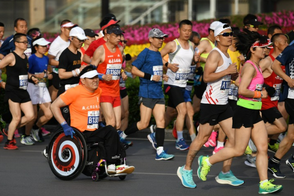 2021西安马拉松赛。新华社记者 李一博 摄