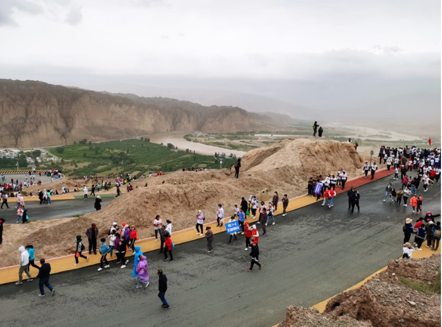 5月22日,参赛选手在第四届黄河石林山地马拉松百公里越野赛比赛中。新华社记者 范培珅 摄