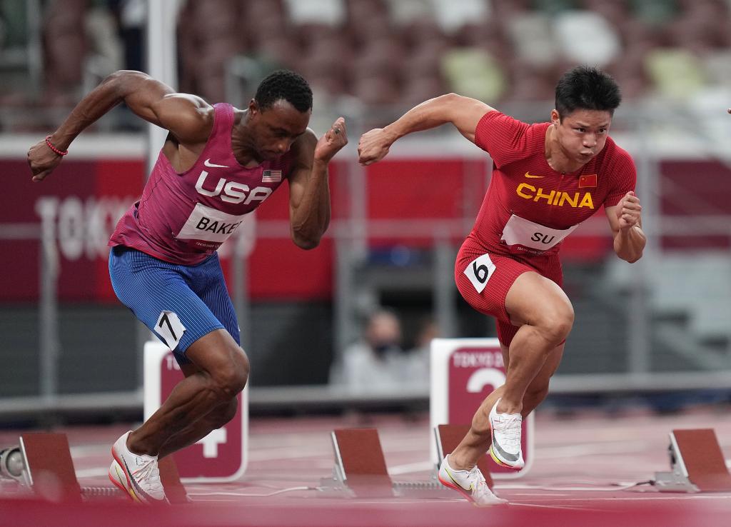 8月1日,苏炳添(右)在比赛中。新华社记者吕小炜摄