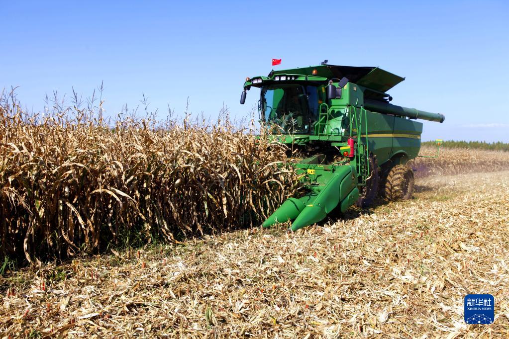 这是10月8日拍摄的黑龙江省八五〇农场玉米收割现场。新华社发(董金虎 摄)