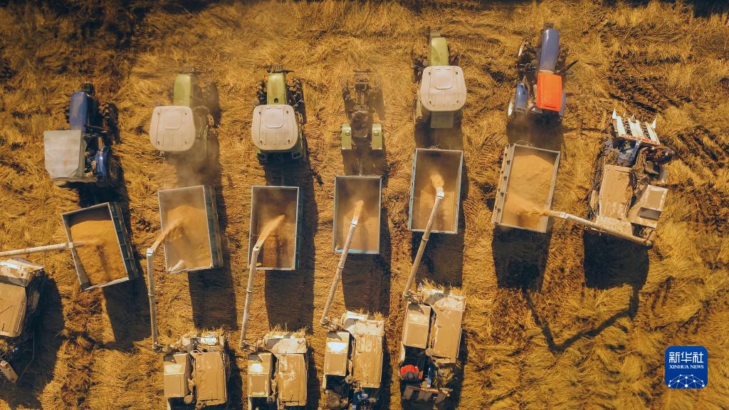 金秋十月,又到一年丰收时。收割机驰骋黑土地,描绘出喜人的金色“丰景”。 10月20日,记者来到北大荒集团建三江分公司所辖的七星农场有限公司,在北大荒智慧农业农机中心指挥室,实验人员发出一条指令,稻田旁的农具库卷帘门缓缓打开,无人收割机根据北斗导航,按照设定路线出库,奔向田间。 七星农场农机手陆向导是第三代“北大荒人”。他说:“我爷爷种地靠人拉肩扛,我父亲开拖拉机,现在我不用下田,远程操控无人机收割。” 目前北大荒集团粮食作物收获全面告捷,预计总产量达460亿斤以上,比去年增加30亿斤。 ![]()