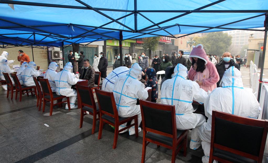 1月6日,河南省许昌市建安区镜湖社区居民在接受核酸检测。新华社发(牛书培 摄)