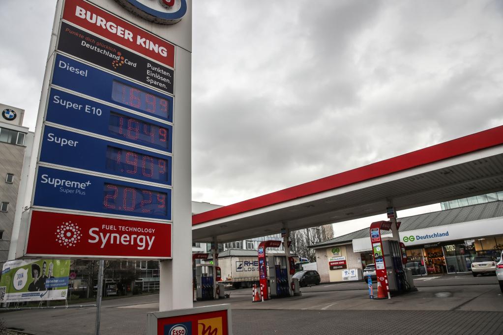 这是2022年2月25日在德国法兰克福拍摄的一家加油站屏幕上显示的油品价格。(新华社发,阿曼多·巴巴尼摄)