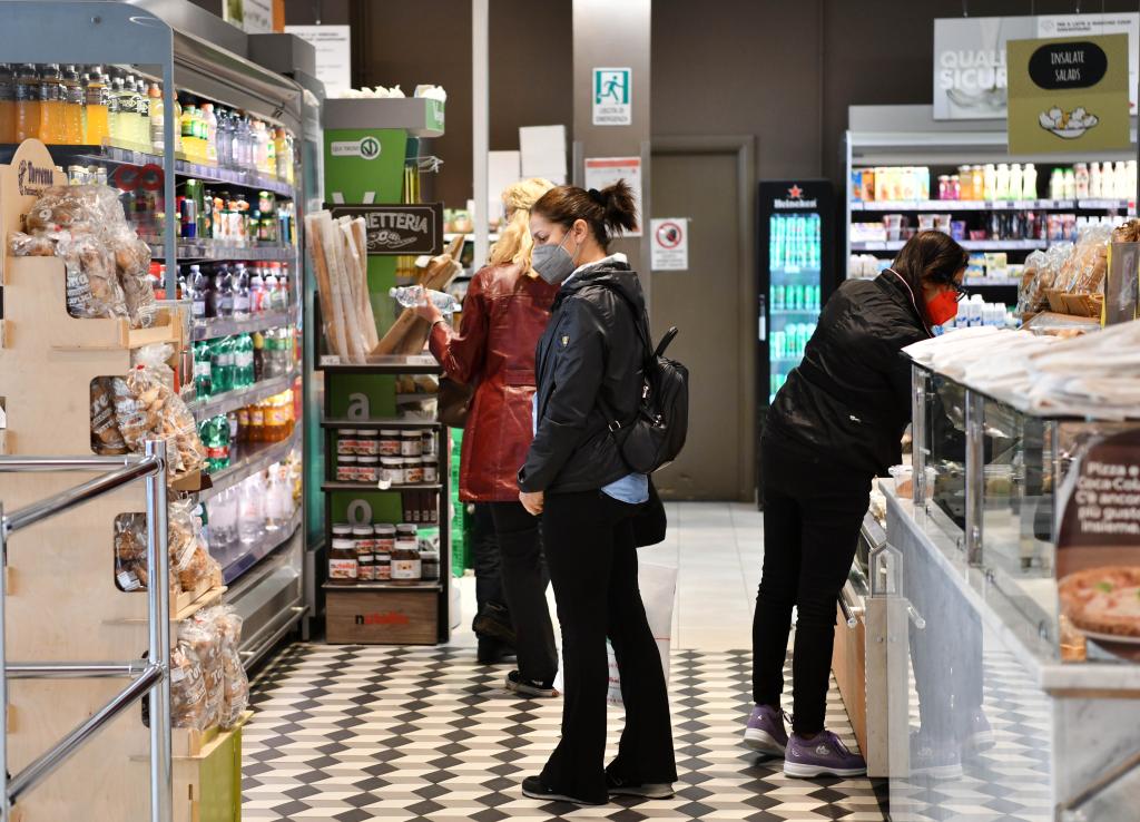 5月1日,顾客在意大利罗马的一家超市购物。(新华社记者金马梦妮摄)