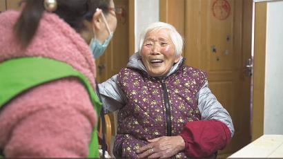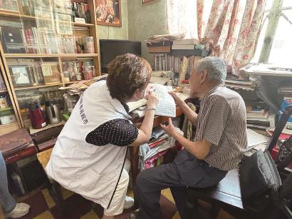 工作人员上门探望沈老伯