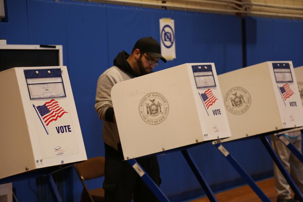 11月8日,选民在美国纽约的一处投票站参加中期选举投票。(新华社记者刘亚南摄)