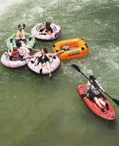 美国南部多地近日接连刷新高温纪录。图为近日,在美国得克萨斯州新布朗费尔斯,人们在河中消暑。