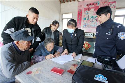 图为如东县人民法院执行干警上门为一对老夫妇发放执行款。 严夏菲 摄