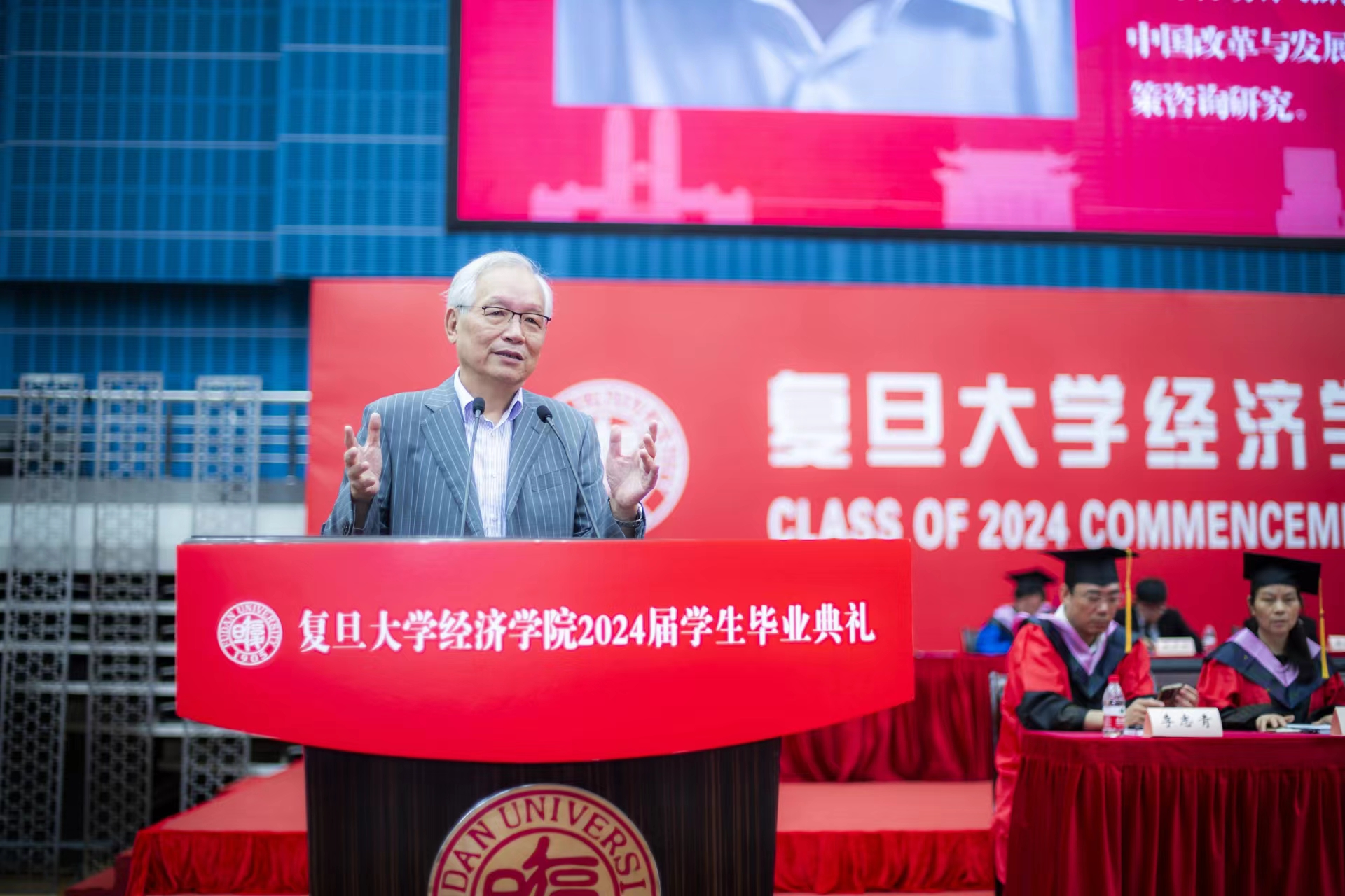 6月23日上午,复旦大学经济学院2024届学生毕业典礼在正大集团体育馆隆重举行。典礼上,上海市社会科学界联合会主席、经济学院1983届世界经济系校友王战为同学们带来毕业演讲。