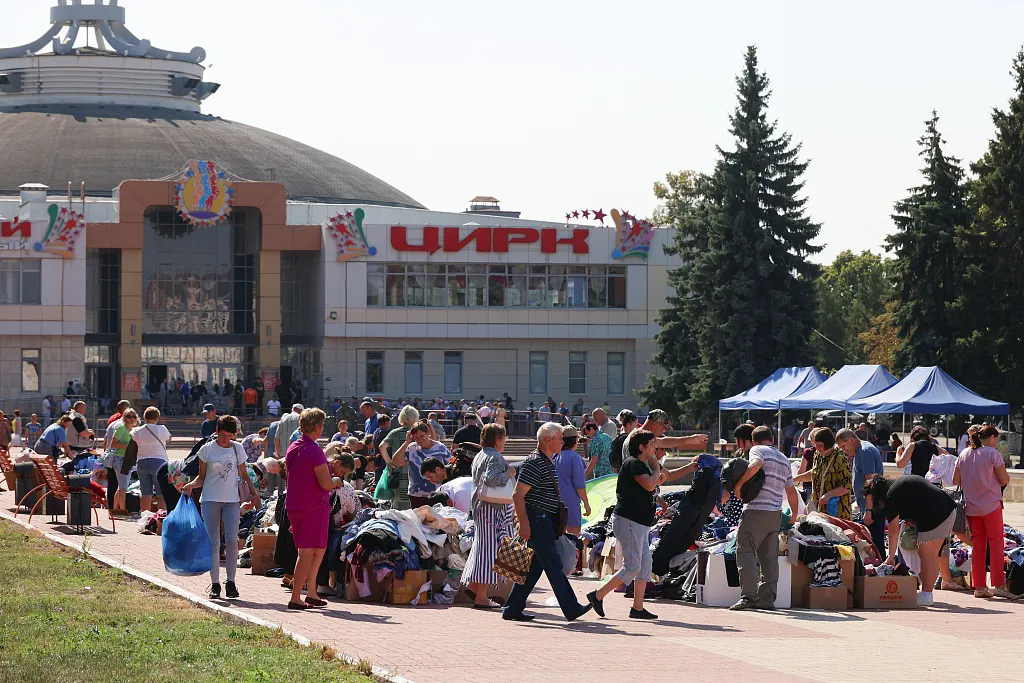 当地时间8月24日 库尔斯克州当地居民正在接受人道主义援助