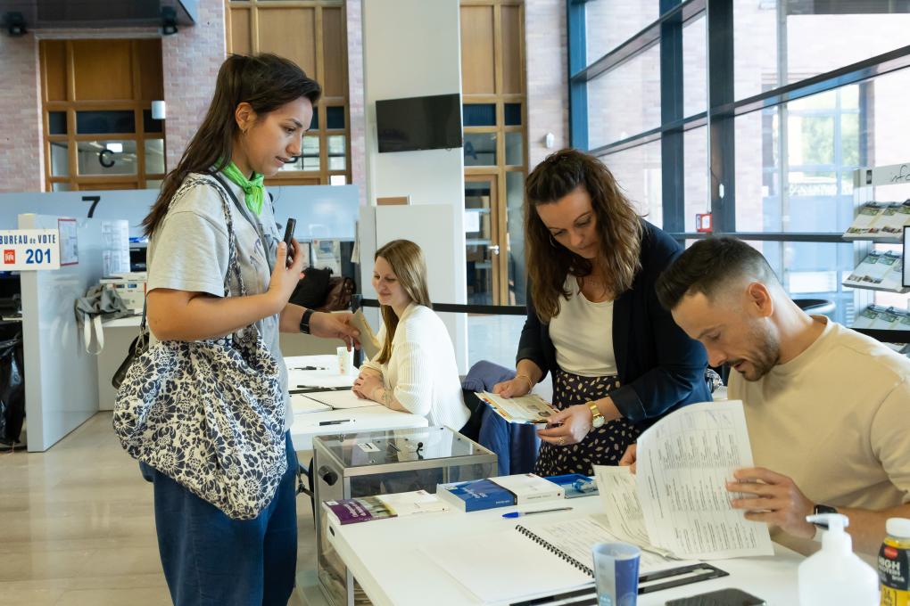 6月9日,选民在法国里尔参加欧洲议会选举投票。新华社发(塞巴斯蒂安·库尔吉摄)