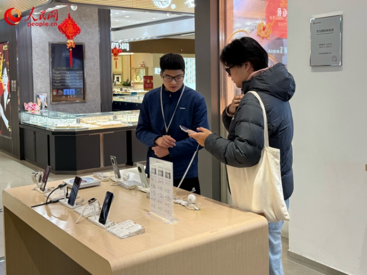 北京某手机卖场工作人员在介绍国补政策以及补贴详情。实习生黄天拓摄