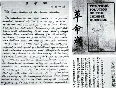 在不少华侨眼中,这位中年人三句不离革命,不过是“一个广东的穷医生的空言号召”。这位“孙大炮”却愈发矢志不移。孙中山痛识到侨民风气仍旧闭塞,他立即行动,要向海外华侨广传革命之声。鼓动革命需要宣传利器。邹容撰写的 《革命军》,于1903年5月在上海印行,是鼓动革命最有力的宣传小册。孙中山看到旧金山侨民极少关心政治,比较关心国事的,大都是保皇会会员。在与黄、伍商量之后,筹款500美元,由 《中西日报》 翻印一万册。 《革命军》 一书在美国流传甚广,华侨得到该书的启发,不到半年,观念大变,同情革命的力量迅速增长。 俯首挥毫革命潮 1904年6月至7月,孙中山沿途进行宣传和募捐活动,由于一时很难打开突破口,他把目标转向留学界及国际方面的支持力量。不久孙中山抵达纽约,他第一次提笔写给未曾谋面的美国人麦克威廉士,请约定时间相晤:“黄先生(黄三德)嘱我一到此间,即行与你联络,定期拜候,将我们旅行全美的目的告诉你……何时在尊处与你会面较为适宜?一获回音,我当立即趋访。” 时任致公堂法律顾问、与黄三德很有交情的麦克威廉士接待了孙中山。几次谋面之后,麦克建议,孙博士既然有志革命,何不草拟发表一篇英文宣言,叙述中国革命运动的主旨,以获得“善良的、政治修明的美国人民”对中国革命的理解和同情? 遍走天下荆棘路,俯首挥毫革命书。会见麦克威廉士后,孙中山在停留纽约的20余天中,忙碌之余,日夜构思这篇英文稿。巧合的是,耶鲁大学的法学博士王宠惠,是孙中山同乡兼故交的儿子。王宠惠欣喜地奔赴纽约,见到了孙中山。在纽约的中国留学生顾维钧也加入进来,几人天天畅谈,深入交流政治构建的设想。受到启发,孙中山提出将“三权宪法”(立法、司法、行政)发展为“五权宪法”(立法、司法、行政、监察、考试),使这五种国家权力能够相互制衡,相互促进。王宠惠等人深以为然。 停留纽约期间,孙中山邀约王宠惠一起构思这篇英文宣言,并参考了美国《独立宣言》的结构框架,阐述三方面的内容:一是指出清政府之不可救药,民主革命的胜利是解决中国问题的真办法;二是指出西方政府对中国问题上两种错误政策,指出他们错误地认定“中国人本性上是闭关自守的民族”,他们散布的所谓“黄祸论”更是“站不住脚的”;三是强调以中国问题为核心的“远东问题”对美国“具有特殊的重要性”,呼吁号称“民主与自由”的美国政府和人民同情支持中国民主革命运动,希望能在他们中间“找到许多的辣裴德”。“辣裴德”,即拉法耶特侯爵,他是法国贵族,年轻时抛弃优渥的生活,第一个志愿参加美国独立战争。在这里孙中山借用辣裴德的故事,希望中国的进步民主革命能得到更多国际支持。 在写好大半文稿后,孙中山为其取名《中国问题之真解决——向美国人民的呼吁》,尔后方于8月4日离开纽约,在赴圣路易斯城之后,孙中山于8月31日将文稿随信寄给纽约的麦克威廉士代为印行。在信中,他托付友人:“在你把它付印之前,我希望你能仔细地订正一遍,并以更正确的英文来改写一下。”在文件中,孙中山直抒胸臆,首次提出“中华民国”的国号,说:“早已规划出一个周密的计划,把这个不合时宜的鞑靼帝国,改造为中华民国。” ![]()