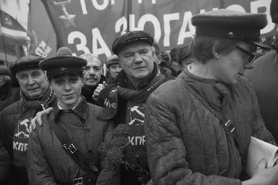 图说:去年11月7日,俄共产党支持者纪念十月革命胜利99周年。
