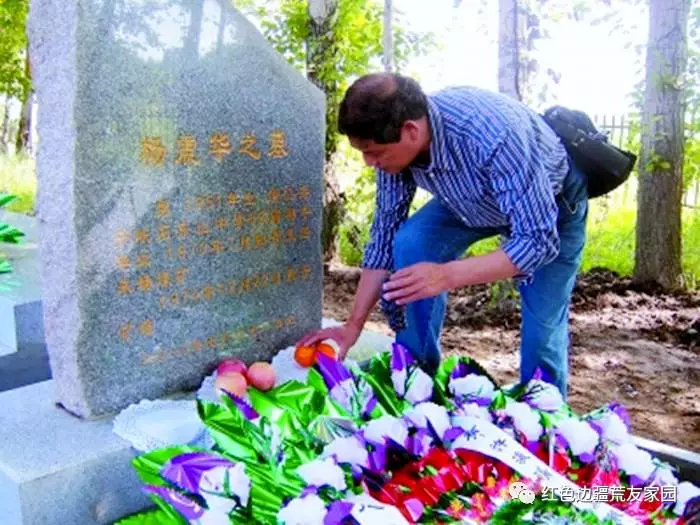 杨震华,男,1951年生。浙江省海宁硖石东山中学68届初中毕业生,1970年7月支边黑龙江生产建设兵团42团煤矿。1974年12月22日殁于矿难。 农场西山墓地 2010年8月13日清晨,857农场朝阳西山墓地。 经过夜雨的洗礼,朝阳场部早晨的空气显得格外清爽,沁人心脾。墓地像被洗过一样,清新翠绿,散发着一股清幽而肃穆的气息。 农场党委书记彭征江、民政局局长杨艳斌、宣传部部长沙伟、广播电视局局长小蒋、办公室主任小陈、老韩和原煤矿知青4人,还有农场电视台记者等10余人驱车来到3人新建墓地。