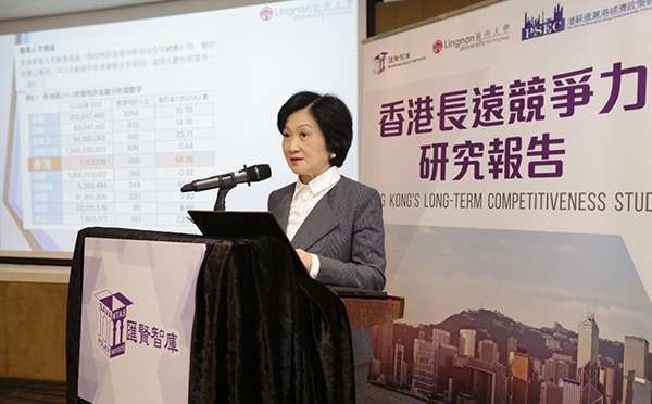 叶刘淑仪代表汇贤智库发表香港长远竞争力研究报告。