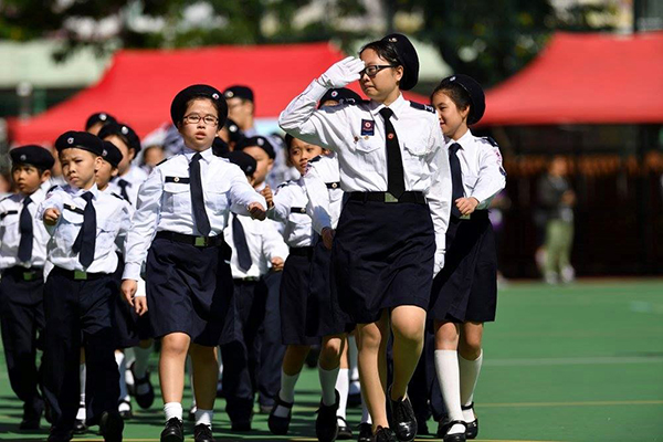 “制服诱惑” 如果你问一个香港家长,为什么让小孩参加制服团体,他可能会举出一大堆理由:放学后有得玩有得学不用操心;表现优异,简历上还可以多写一笔,助力升学;回家后“小皇帝”变身“乖乖仔”,甚至自觉帮手家务,“唔知几好”。 但如果你问一个香港小孩,为什么要参加制服团体?他的答案或许很简单,“制服好靓!”香港海事青年团司令陈伟强就对澎湃新闻(www.thepaper.cn)记者笑称,从未担心团员招募困难,因为光是一身纯白的海军制服,就已备受孩子们青睐。难怪有香港媒体把港人对于制服团体的追捧称之为“制服诱惑”。 其实光从制服上看,就很容易分辨出不同的制服团体,各自历史渊源也一目了然。每个制服团体都有与自身历史文化相关的特色活动,但相通的底色是纪律文化。因此常有出身香港警察等纪律部队的退休高级官员,义务受邀出任制服团体总领袖。 香港特区的制服团体文化受英国影响较深。例如,香港海事青年团、香港少年领袖团、香港航空青年团的成立分别与英国海、陆、空军关系密切;香港童军总会和女童军总会与发轫于英国的童军运动一脉相承;拥有少年团和青年团的香港红十字会,回归前曾是英国红十字会分会;香港圣约翰救伤队少青团回归前受英国圣约翰总部指令和规例,该组织的历史甚至可以追溯到中世纪三大骑士团之一的医院骑士团;香港基督少年军的渊源是1883年在苏格兰成立的基督少年军,香港基督女少年军则脱胎于20世纪初进入香港的基督教青年会。 除此之外,还有多家香港政府机构背景的制服团体:民众安全服务队少年团(以下简称“民安队少年团”)、医疗辅助队少年团和香港交通安全队。 值得一提的是,6月30日国家主席习近平刚刚拜访过的少年警讯,总部设于香港警察公共关系科,以20多万会员荣膺香港最大的青少年组织之一。不过因 “会员”一度不用穿制服且不参加一年一度的制服团体日,少年警讯通常被视为“半制服团体”,不在通常所说的14家制服团体之列。 香港回归后,两个新的制服团体宣告成立,他们是香港升旗队总会和香港青少年军总会。前者由教联会成立于2002年7月1日,旨在推广学校及团体的升旗文化,增强会员对国民身份的认同;后者则成立于2015年1月15日,以中式军事步操为训练基础,获解放军驻港部队和中联办支持。 所谓“制服团体”,有一特殊之处:除了民安队少年团、香港青少年军总会等少数团体外,大部分制服团体,如要参加必须先自费购买制服。比如近两年,一整套童军制服费用接近700港元,香港基督女少年军制服连配件价值635港元,香港少年领袖团的制服更高达1235港元。 不论哪个年代,一套价格不菲的制服足以将许多香港孩子挡在门外。香港女童军总会副领袖蔡宝玉就是如此。她的父亲上世纪60年代初从汕尾逃至香港,十几年后她上小学时,家庭经济仍捉襟见肘,很难为她支付一套制服。直到成年后朋友偶然介绍,她才得以一圆少时加入女童军的梦想。 香港童军总会内地事务署署理总部总监黄冠麟是“80后”,加入童军也是相似路径。他笑称,自己小时候唯一加入的制服团体是民安队少年团,因为不仅制服、活动都免费,团员按要求提供一些服务,反而还会获得津贴。 ![]()
