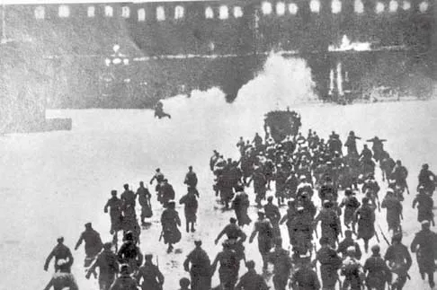 1917年11月,赤卫队员和士兵攻打冬宫。