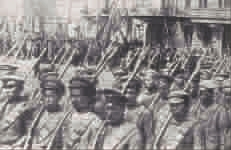 ![]() ■ 红军第225团部分官兵合影,第二排右数第三位(着浅色衣服者)就是团长任辅臣 ![]() ■ 准备开赴前线的红军中国营,他们的军旗上写着“俄共(布)万岁” ![]() 二○○七年出版的俄文专著《中国军团》封面,就选用了一九一九年同哥萨克白卫军斗争的中国志愿兵照片 ![]() ![]() ■ 在伏尔加河流域参战的中国志愿兵 ![]() ■ 1919年,《彼得格勒日报》以《人民武装》为题报道中国国际营 50年前,苏联上映了一部家喻户晓的电影《神出鬼没的复仇者》,讲述一位吉卜赛男孩为父报仇,打入白卫军内部的故事,给人留下深刻印象。但在布利亚辛的原著《红小鬼》里,他却是个中国男孩,十月革命胜利后参加苏俄红军。这个中国男孩只是真实历史的缩影,当年曾饱受压迫的数万华工聚集在红色旗帜下英勇奋战,他们的事迹是如此伟大,后人每每面对他们的纪念碑时都会热泪盈眶。 1 被歧视的“伙家-伙家” 华工进入俄国的历史,要追溯到1862年,也就是中俄签定《北京条约》之后,他们来到远东开矿。但数量最大的一批旅俄华工出现在一战期间,因为大多数俄国男性都送上前线,沙俄不得不紧急引进外国劳动力。1915年,旅俄华工有4万人,1916年为7.5万,1917年达到20万,并且都是合法移民。 为什么有那么多中国人通过合法途径涌入俄国呢?沙皇可不讲什么共产主义,他手下的部长们是从“美国先例”中算出一笔精明账。多年来,美国奴役廉价华工,他们修建了许多重大工程,得到的报酬却很少。沙俄如法炮制,以高薪诱骗赤贫华工当苦力,这些人不酗酒,能喝下像刷锅水一样的清汤;在包工头面前,他们总是老老实实地服从管教;他们也不懂俄语,不用担心俄国布尔什维克的革命宣传。俄国包工头把华工蔑称为“伙家-伙家”,实际是汉语“伙计”的音译。1917年,沙皇倒台,身在异国他乡的华工突然失去雇主,失去工作,也失去了生活来源,有家难回。 2 雇佣兵还是志愿兵 十月革命胜利后,建立苏维埃政权的布尔什维克(注)不像沙皇官吏那样欺压华工,而是称他们为“阶级兄弟”。革命领袖列宁以“平等”和“平分土地”的口号对华工进行宣传,表示在苏维埃政权稳定后支持他们回国,解放仍受阶级压迫的亲人。布尔什维克还提高华工的社会地位,给予应得的尊重,有了尊严的华工可以为保卫苏维埃舍身忘死。 华工的长处是团结、宗族观念强、遵守传统礼法、痛恨叛徒,很容易组织起独立、团结、纪律严明的作战部队。苏联作家戈尔斯基在纪实小说《冷崖》中写道:“中国志愿兵在讨伐行动中十分英勇,对待敌人像猛兽一样。” 长期以来,企图抹黑十月革命的人总要找到所谓“证据”,强调参加苏俄红军的中国人是为钱而战的雇佣兵,其实在文学巨匠肖洛霍夫的名著《静静的顿河》里,主人公麦列霍夫就讲过这样一段话:“中国人参加红军只有极少的薪水,而每天都要冒着生命危险,要这点儿钱有什么用?连根毛儿都买不到。应该说,这根本不是钱的事儿……” 事实上,中国战士得到的钱只能算津贴,因为这些钱很少,布尔什维克真正给他们的是平等的社会地位与自尊。以战斗英雄、红军第225团团长任辅臣为例,他在中国就上过中学和军官学校,他不仅自愿加入红军,还号召大量华工参军,并于1918年春组建了一个中国志愿兵团,该团以勇敢闻名,任辅臣在与高尔察克白卫军作战牺牲时年仅34岁,支撑他的绝不是金钱,而是对共产主义的伟大信仰,列宁就称赞任辅臣是优秀的共产主义者。 1919年,苏俄最著名的记者科利佐夫在《基辅之声》上发表题为《中国志愿兵日记》的特写,其中写道:“他们的营房打扫得干干净净,每个人都剪了短发,说起话来言简意赅,黝黑的脸上带着腼腆的微笑。今天他们就要前往伏尔加,向陌生、漆黑的房间里射击,去捣毁那些阶级敌人的堡垒……” 3 战斗在辽阔大地 苏维埃政权建立后,英美法日帝国主义纠集俄国白卫势力反扑,为了保卫胜利果实,苏俄组建了高达数百万人的红军,其中有30万国际主义战士,人数最多的就是中国志愿兵。 苏俄红军第1军是列宁的近卫军,它组建了第一支完全由中国人组成的“国际支队”,负责保卫领袖的人身安全,当时最靠近列宁的第一层警卫就是70名中国战士。 红军第一支中国战斗营是由约纳·埃马努伊洛维奇·亚基尔组建的,亚基尔是一位化学家的儿子,毕业于瑞士最古老的巴塞尔大学,一战之初回国,1917年二月革命推翻沙皇后加入布尔什维克,迅速成长为中高层领导,还担任过红军罗马尼亚方面军特别集团军政委,随即组建了中国战斗营。亚基尔后来当上乌克兰军区司令员,他在《内战回忆录》中写道:“我们对中国志愿兵的待遇问题非常关注,薪水发得很及时,伙食也不错。我和他们长期接触过,他们共有530人,都值得信任,跟随我们一直从乌克兰打到顿河,再到沃洛涅日。” 全俄肃反委员会(契卡)基辅特别营改编的“中国支队”也很出名,支队长是中国人李秀良(音)。1919年4月,李秀良支队参加乌克兰库列涅夫卡地区的战斗,镇压了富农叛乱。6月,支队在第聂伯河东岸抵抗邓尼金白卫军时牺牲了不少人,但掩护了主力部队转移。 裴吉山则是契卡在捷尔斯卡亚的高层官员,他在那里组建了中国志愿兵独立第1支队。 4 不可磨灭的记忆 肖洛霍夫、奥斯特洛夫斯基等苏联文学巨匠都写过关于俄国革命战争的小说,他们的作品里都谈到中国志愿兵。奥斯特洛夫