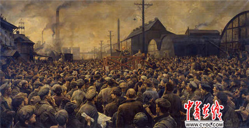党的十九大报告中指出:一百年前,十月革命一声炮响,给中国送来了马克思列宁主义。今天下午,中国国家博物馆与俄罗斯国家历史博物馆联合推出“纪念十月革命100周年——俄罗斯国家历史博物馆藏十月革命文物展”,展出的238件文物均为首次来华,包括21位俄罗斯苏维埃联邦社会主义共和国功勋艺术家的杰作。 展览共分三个部分:第一部分“伟大的革命”,第二部分“人民的纪念”,第三部分“中苏友谊”。 ![]() “伟大的革命”展示了“阿芙乐尔”号巡洋舰舷窗、“十月革命万岁”旗帜等珍贵文物和20余张描绘十月革命、重大事件的油画作品。比如,勃罗茨基的《1917年5月列宁在普基洛夫工厂工人大会演讲》、谢洛夫的《列宁在全俄苏维埃第二次代表大会上讲话》、索科洛夫·斯卡利亚创作的《向冬宫突击》等经典历史题材绘画作品。 ![]() 其中,雕塑《列宁在装甲车上》创作于1924年,表现了1917年4月3日,列宁回到彼得格勒,在车站受到群众热烈欢迎,并发表演讲的情景。作者马特维·根利霍维奇·马尼泽尔是苏联人民艺术家、三次斯大林奖金获得者。他擅长创作大型雕塑纪念碑、圆雕和高浮雕。 “人民的纪念”以十月革命后到20世纪80年代末创作的宣传海报和纪念性文物,展现十月革命以后人民对革命的纪念。这些海报包括摩尔的《你参加志愿军了吗?》、托依泽的《祖国母亲在呼唤!》、柯列茨基的《为了苏联政权!》,以及由卢克列夫斯基设计的第一部反映十月革命的电影《十月》宣传海报等。 ![]()