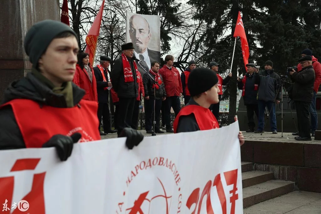 2017年11月6日,俄罗斯RYAZAN,自苏联于1991年解体后,俄罗斯共产党作为国内反对党的力量慢慢减弱,有评论指俄罗斯国内对十月革命的情绪错综复杂。