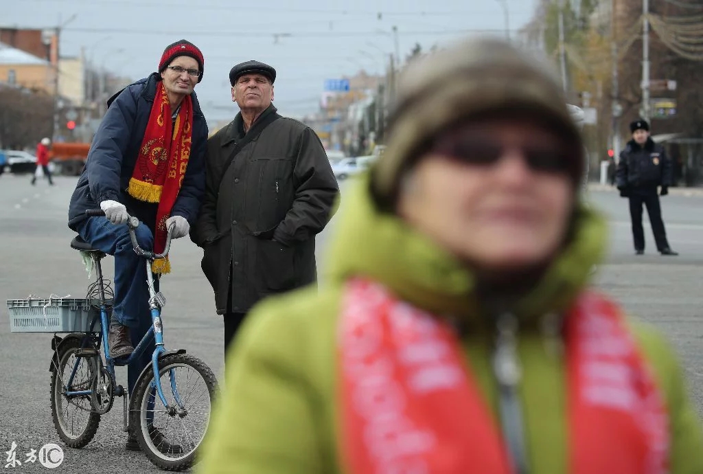 2017年11月6日,俄罗斯RYAZAN,整个活动现场以老年人居多,看见几名年轻人,还是举旗的。